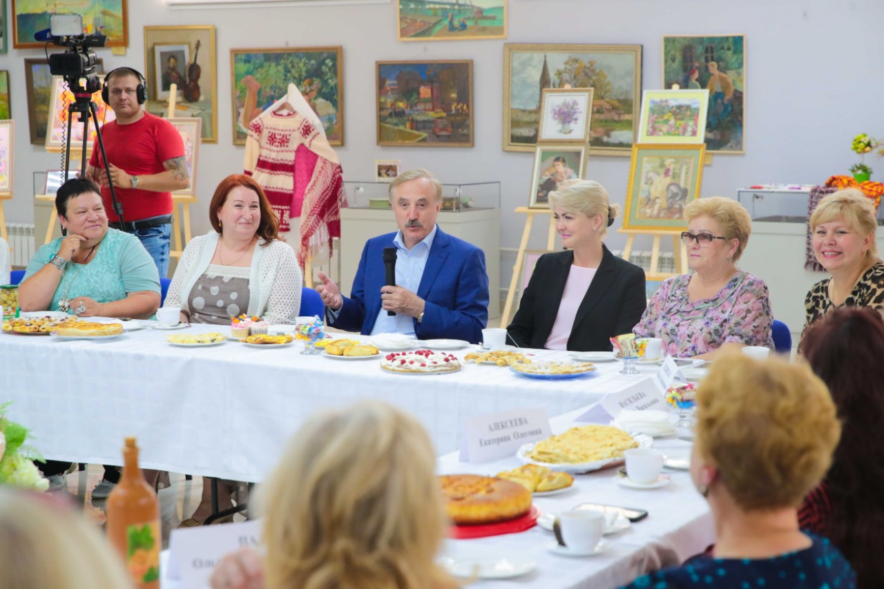 Во время чаепития конкурсантки угостили главу муниципалитета своими кулинарными изысками, которые они приготовили специально к мероприятию. После чего продемонстрировали творческие работы: картины, вязание, вышивку и др.