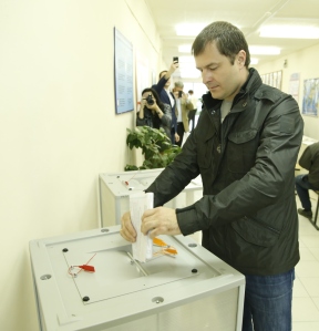 Сторонник партии «Единая Россия» Владимир Волков принял участие в предварительном голосовании. В 10.30 он приехал на счетный участок № 50.121.044, находящийся в гимназии №56.