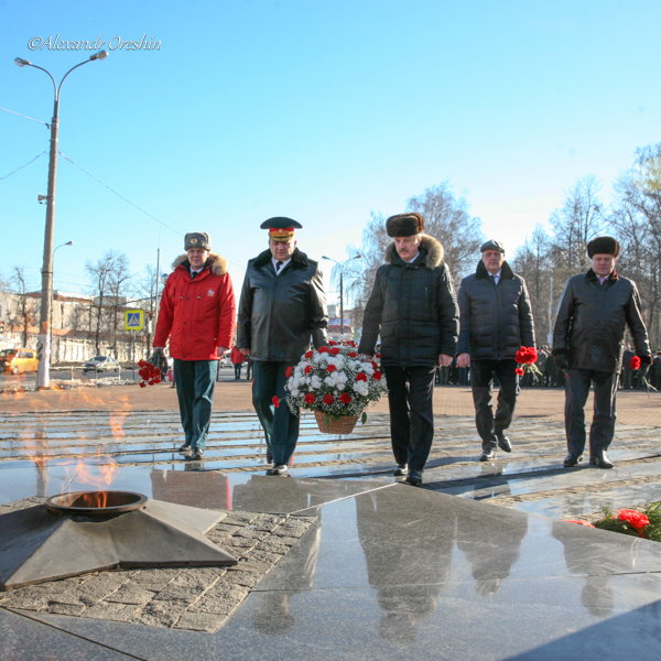 Цветы в честь Дня защитников Отечества к памятнику возложили глава Люберецкого района и города Люберцы Владимир Ружицкий, начальник управления по обеспечению деятельности противопожарной спасательной службы Московской области Николай Вдовин, первый заместитель начальника главного управления МЧС России по Московской области Вячеслав Бутко, Советник Председателя Правительства Московской области Владимир Копанев.