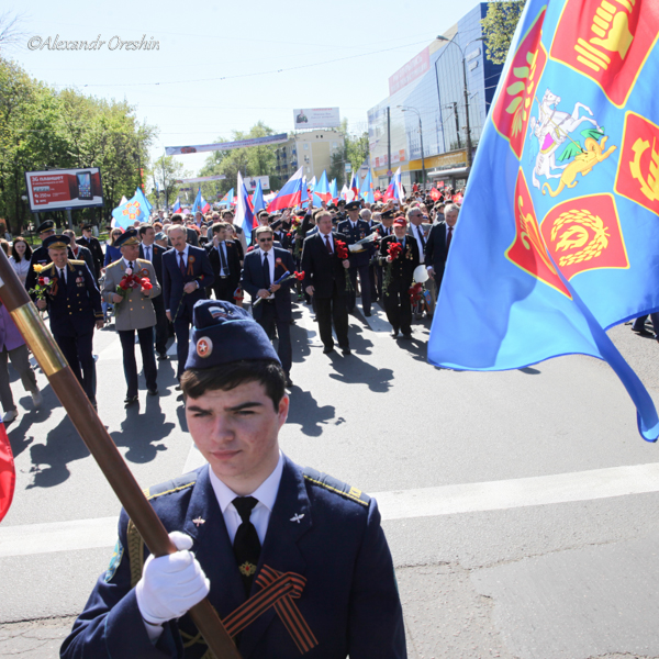 По окончании митинга праздничная колонна двинулась по Октябрьскому проспекту к памятнику Воину-Освободителю. В шествии приняли участие ветераны Великой Отечественной войны, представители администрации, политических партий, общественных объединений и профессиональных коллективов. Колонну приветствовали учащиеся люберецких школ и профессиональных училищ.