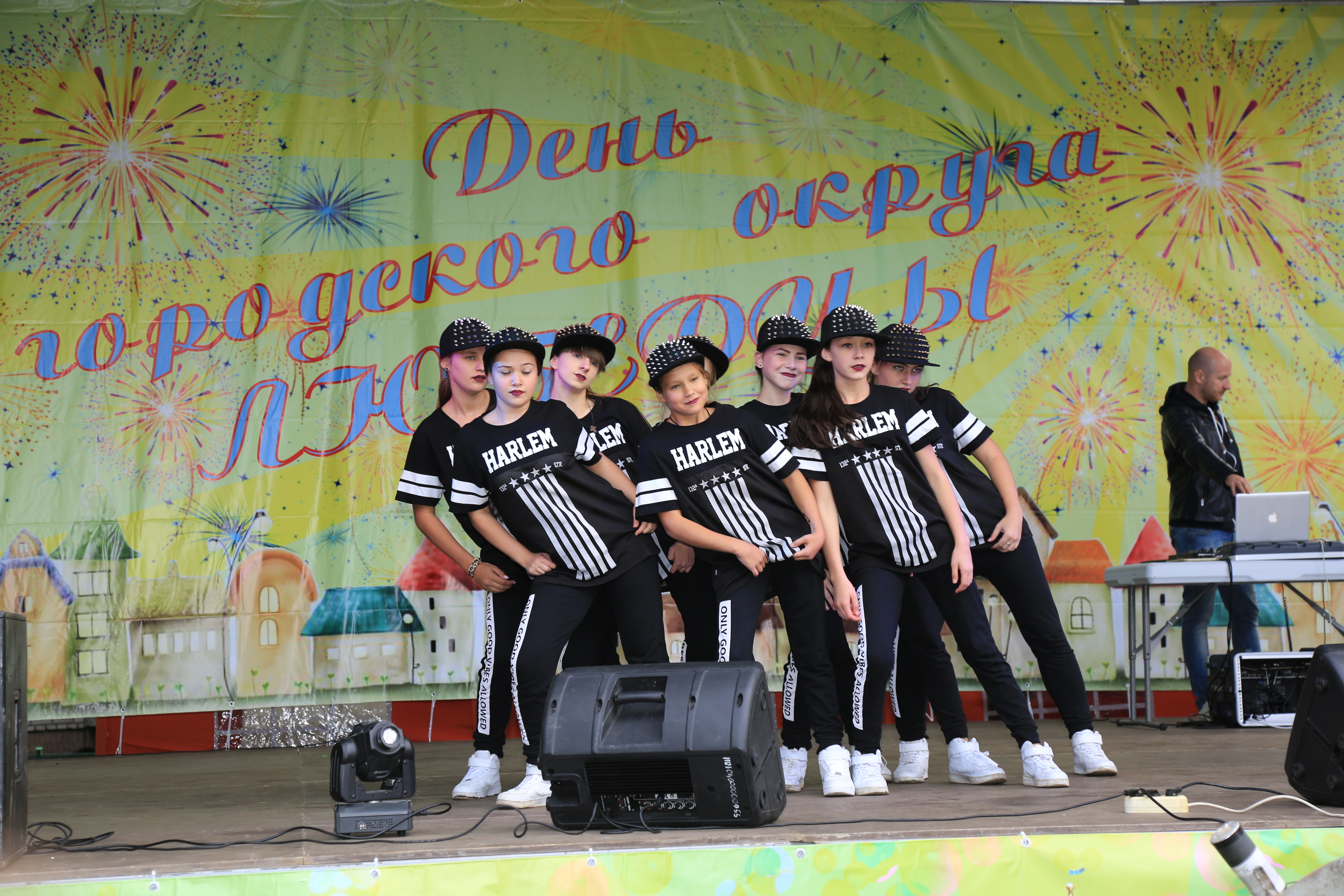 В поселке Томилино праздничные мероприятия по случаю Дня городского округа Люберцы со стадиона «Урожай» переместились на одну из лучших в округе дворовых территорий: на ул. Гоголя, к домам 48-49. И здесь уже в полном разгаре основные действа праздничного дня.