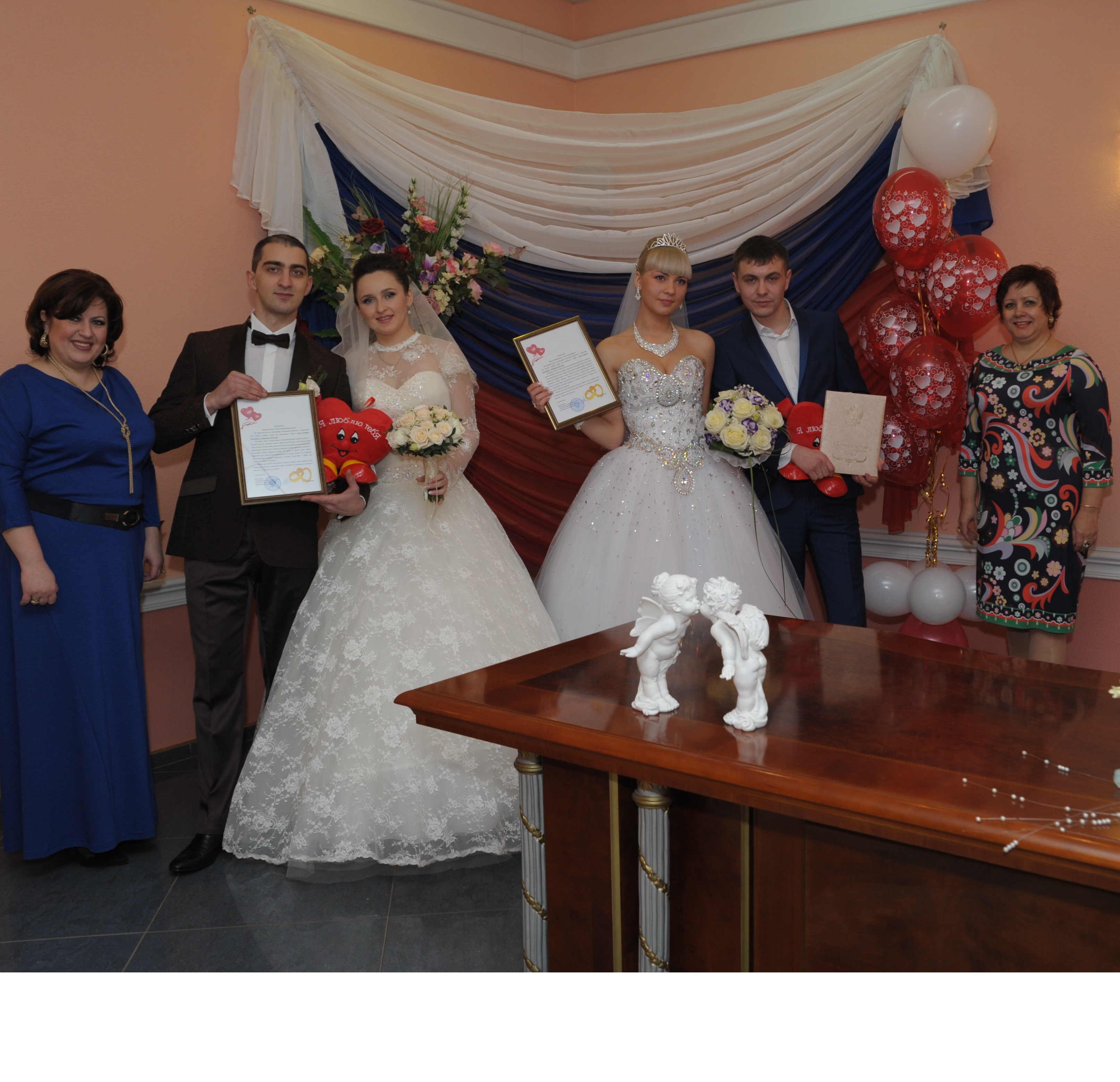 В этот день молодожены дарили друг другу подарки и признавались в любви. Зал проведения торжественной церемонии бракосочетания был оригинально украшен стойкой из шаров – сердечек.
