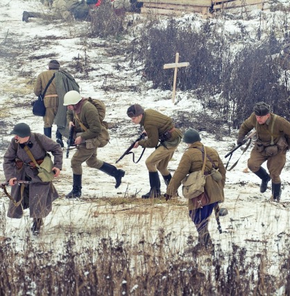 Зрители стали свидетелями сцены боя 336-й сибирской стрелковой дивизии с немецкими захватчиками. Это советское войсковое подразделение входило в состав 5-й армии Западного фронта под командованием Георгия Жукова.