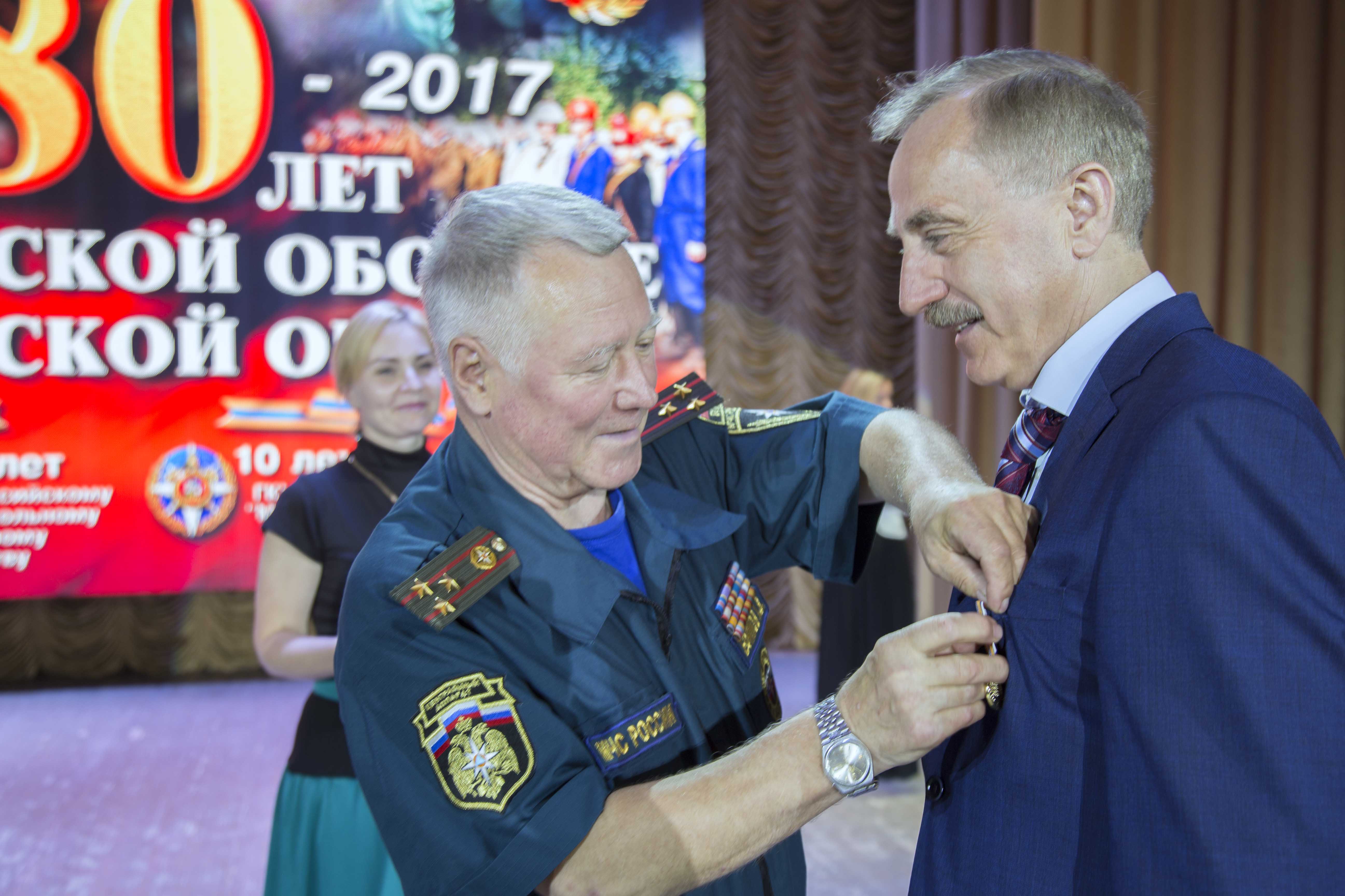 На торжественном мероприятии, посвященном 80-летию создания Гражданской обороны в Московской области, в Люберецком Дворце культуры главу городского округа Люберцы Владимира Ружицкого наградили Памятной медалью МЧС России «Маршал Василий Чуйков».