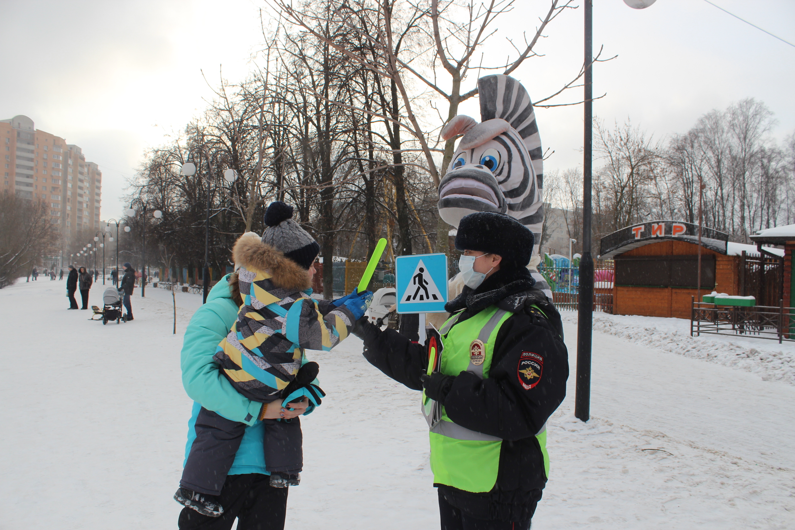 Инспекторы ГИБДД в игровой форме напомнили детям и их родителям о важности соблюдения Правил дорожного движения, о правилах перехода проезжей части, а также о безопасных местах для катания на санках.