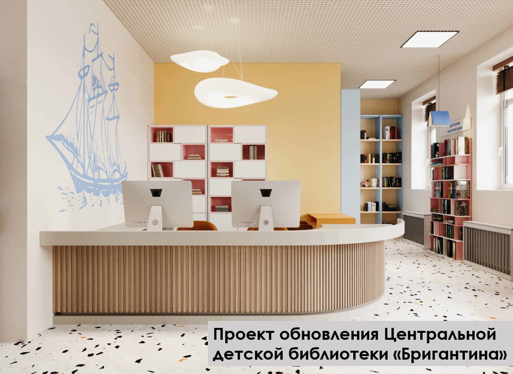 После обновления здесь появится новое современное пространство с концепцией, связанной с историческим названием библиотеки — «Бригантина». Идею и цветовое решение согласовали с постоянными читателями.