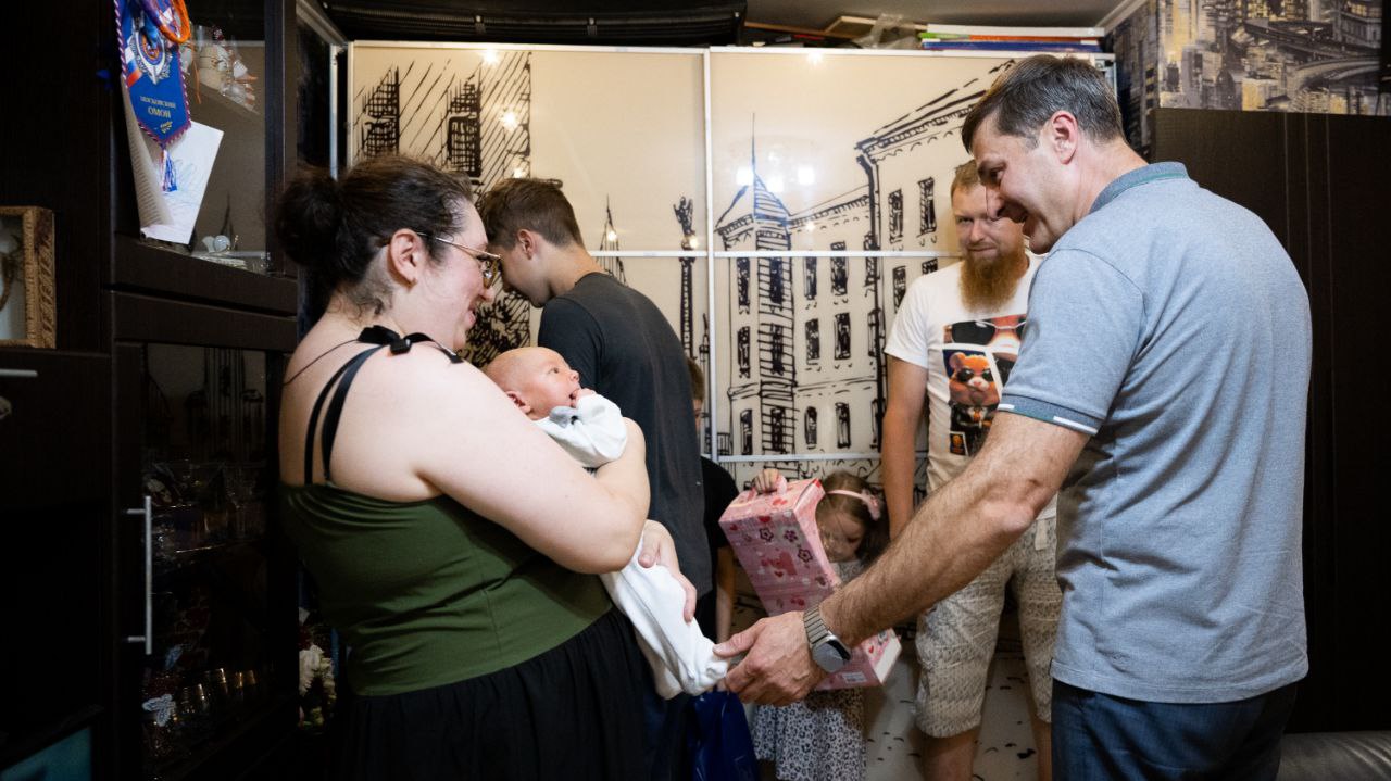В многодетной семье военнослужащего Евгения и его жены Ирины из городского округа Люберцы произошло радостное событие — 4 июля у пары появился четвёртый ребёнок. Глава городского округа Люберцы Владимир Волков посетил молодую семью и поздравил родителей с рождением малыша.