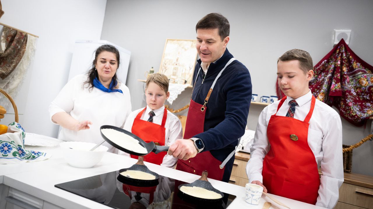 Глава городского округа Люберцы Владимир Волков поздравил школьников с началом масленичной недели и принял участие в традиционном занятии — выпечке блинов.