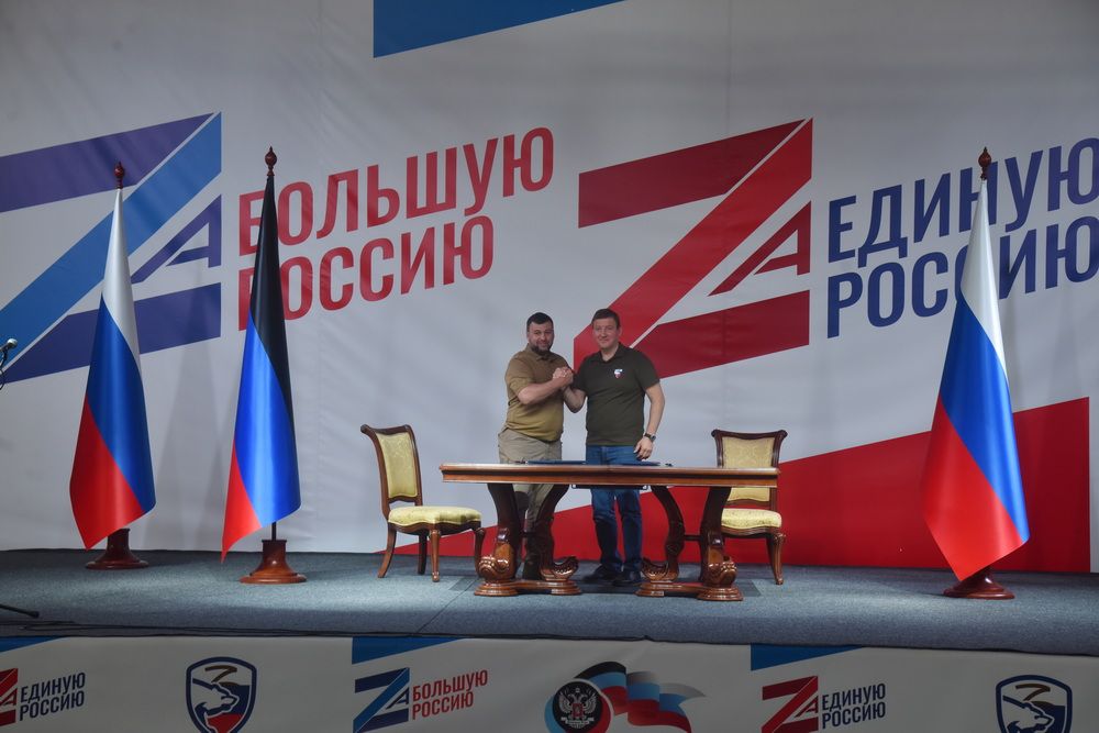 Подписи под документом на встрече с активом движения поставили секретарь Генсовета партии Андрей Турчак и глава ДНР Денис Пушилин.