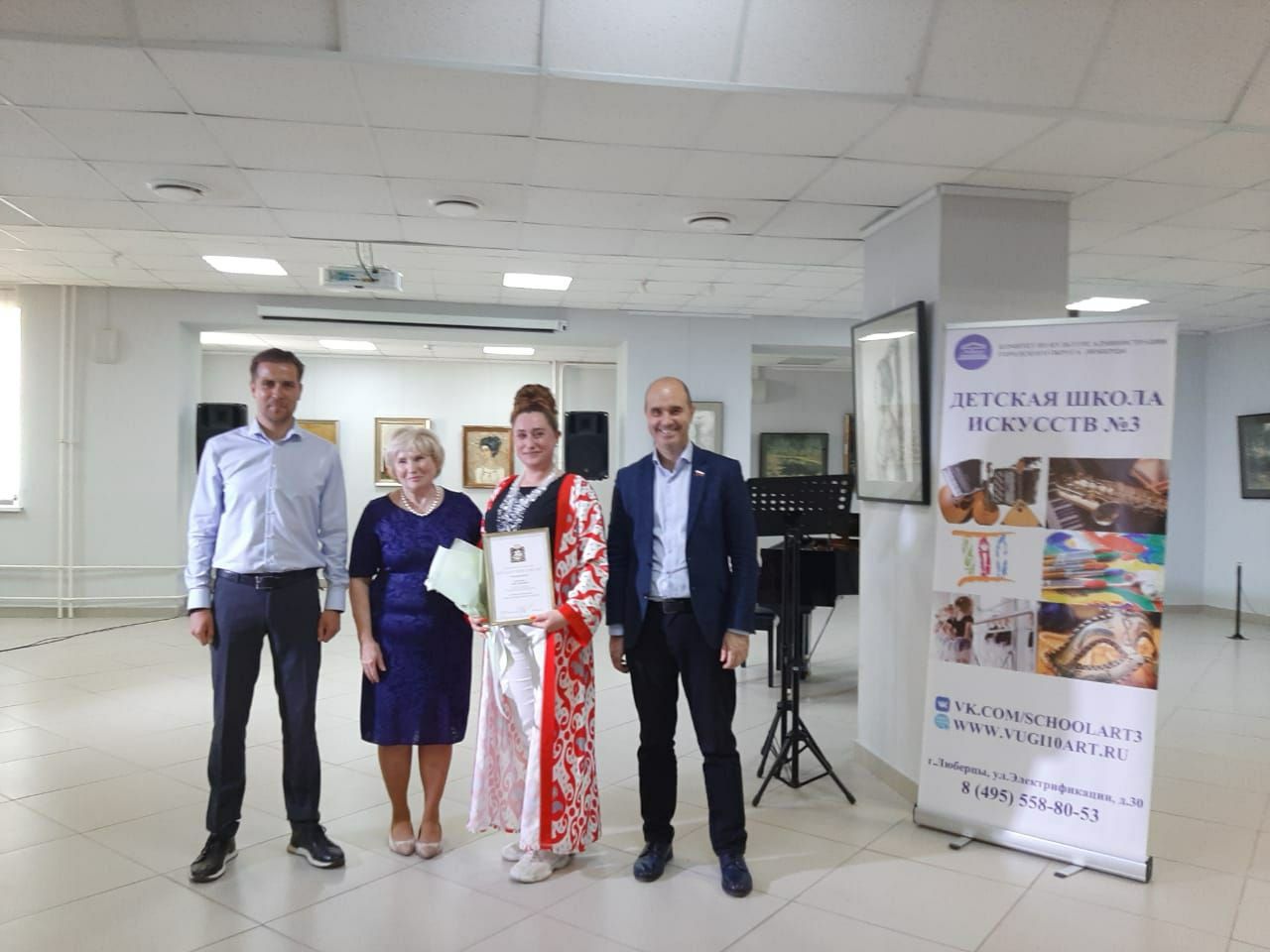 Она добавила, что партийцы вручили Благодарственное письмо от Мособлдумы трудовому коллективу и заведующей Люберецкое картинной галереей Анне Костровой.