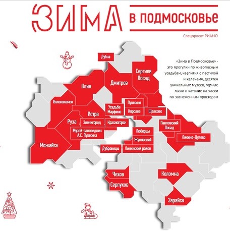 Для путешествий по Московской области люберчане могут воспользоваться картой туристических объектов «Зима в Подмосковье».