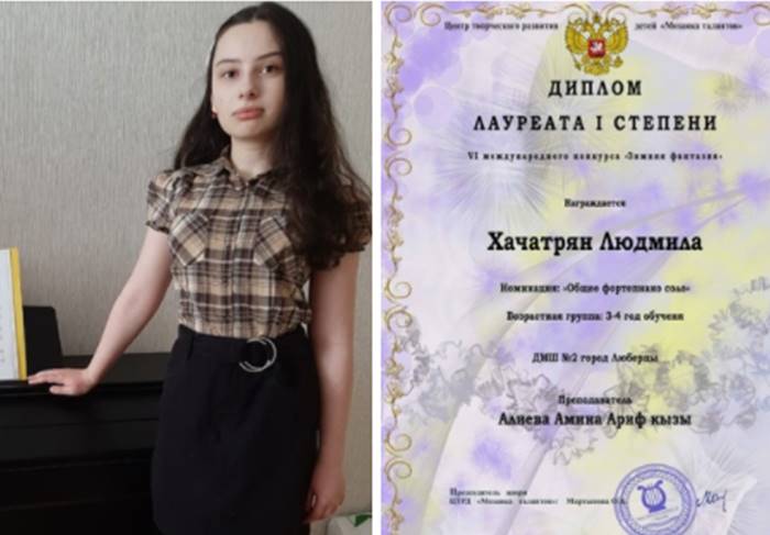 Ученица детской музыкальной школы №2 Людмила Хачатрян стала лауреатом I степени Международного музыкального конкурса «Зимняя фантазия», который проходил в режиме онлайн.