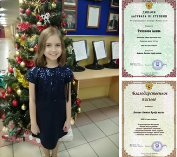 Ученица детской музыкальной школы №2 Алина Тихонова стала лауреатом III степени Международного конкурса «Музыка осени», который проходил в режиме онлайн.
