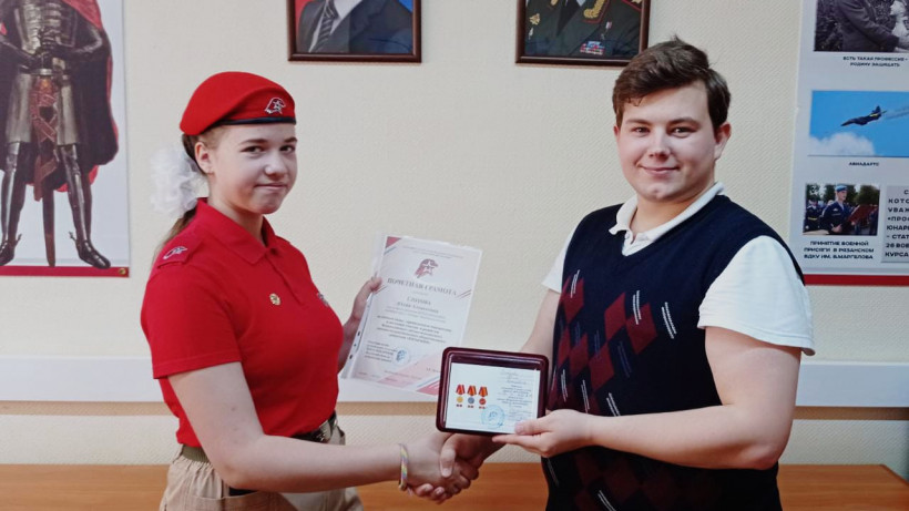 Сегодня, 20 июля, люберецким юнармейцам Глотовой Юлии и Полищук Евгению вручили награду «Юнармейская доблесть» III степени. Церемония прошла в военном комиссариате Московской области.