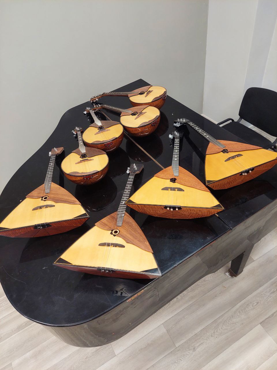 Она сообщила, что всего поступило 14 инструментов: 4 концертные балалайки, 5 концертных домр и 5 классических гитар.
