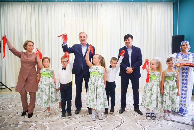 Вместе с генеральным директором ООО СЗ «Самолёт-Томилино» Рустамом Исхаковым и заведующей садом Натальей Овчинниковой глава перерезал символичную красную ленточку.