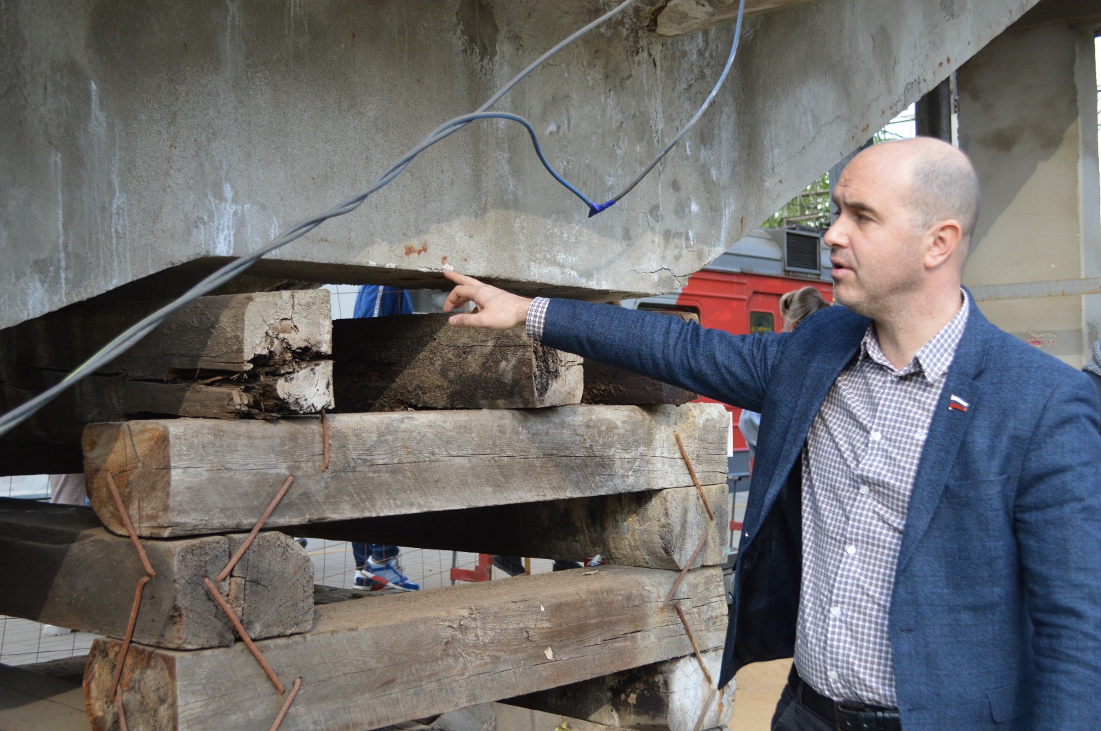Руководитель фракции «Единой России» в Совете депутатов городского округа Люберцы, муниципальный руководитель партийного проекта «Городская среда» Александр Шлапак проинспектировал временную опору моста на ж/д станции «Ухтомская».