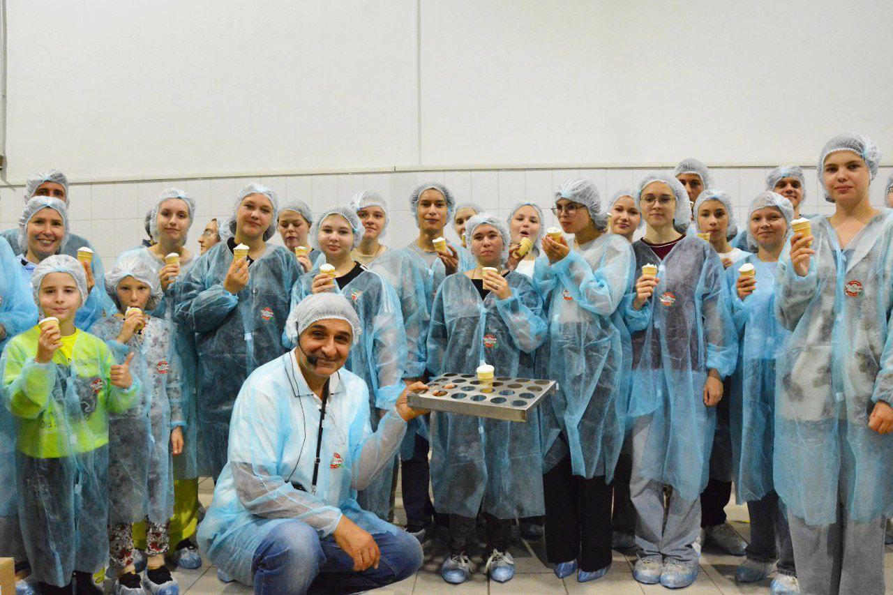«Экскурсию для волонтёров провёл вице-президент компании Армен Бениаминов. Он рассказал молодым людям, как отбирается сырьё, по каким технологиям готовится мороженое и как осуществляется упаковка готовой продукции», - отмечается в сообщении.