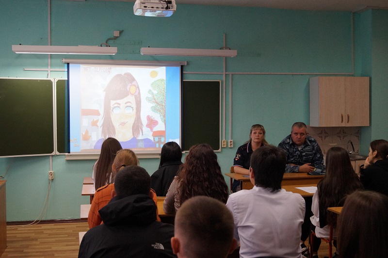 Старший инспектор группы по связям со СМИ МУ МВД рассказала ребятам о том, что этот день приурочен к трагическим событиям. Сотрудник отдела уголовного розыска напомнил об основных мерах безопасности при террористических угрозах, а также об административной и уголовной ответственности за правонарушения и преступления в области экстремистских проявлений, в том числе во время проведения массовых акций, митингах и пикетировании. У террора нет нации, нет религии и нет будущего.