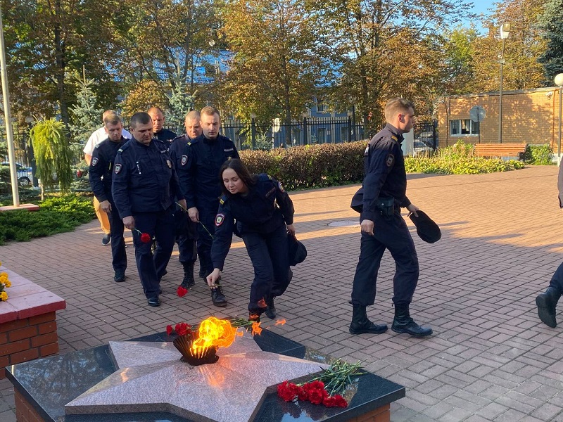 У мемориального комплекса «Слава участникам Великой Отечественной войны и сотрудникам милиции, погибшим при выполнении служебных обязанностей» в Люберцах полицейские возложили цветы у к Вечному огню в память о погибших от рук террористов.