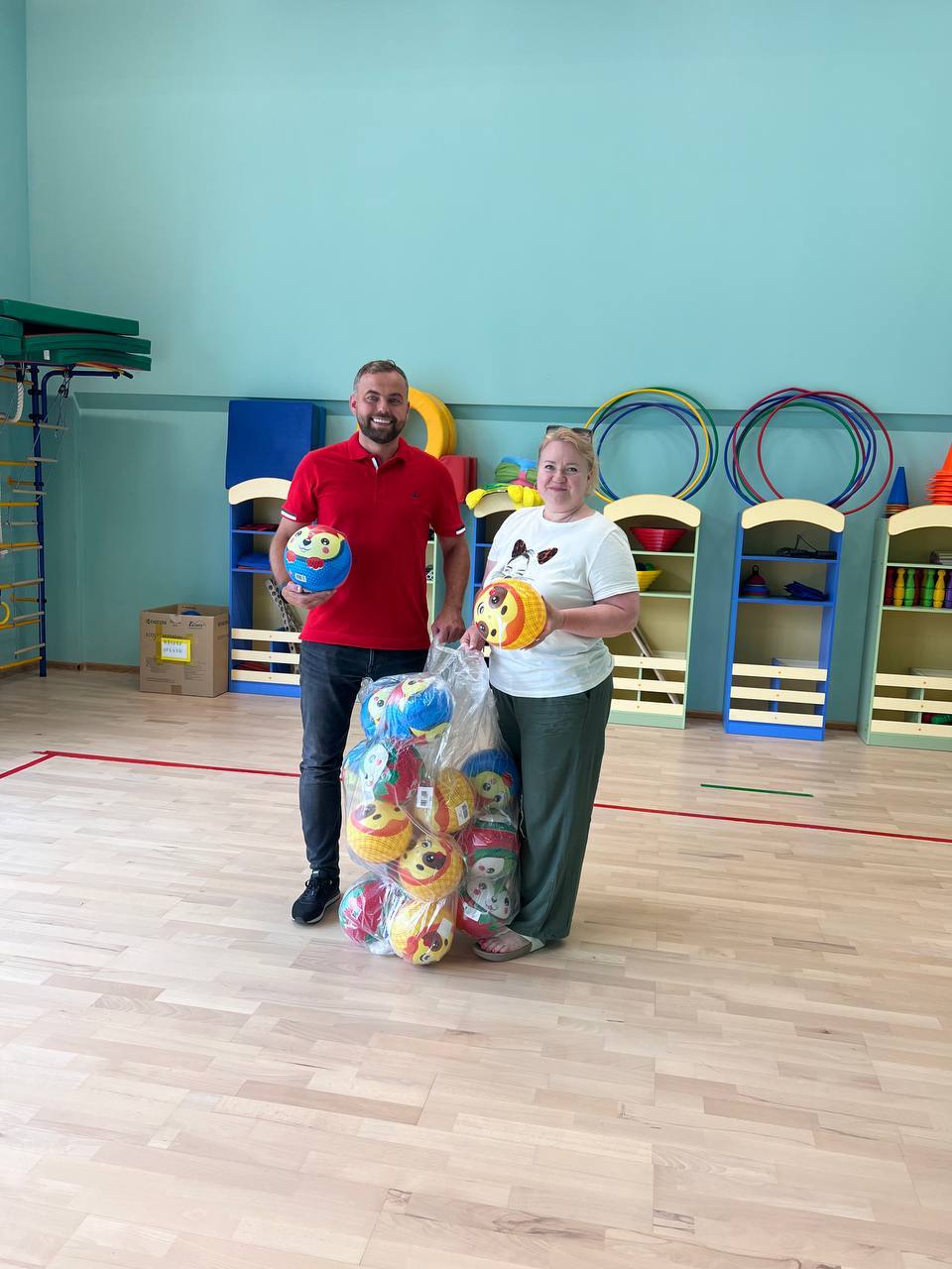 Представители РФСО «Спартак» в Люберцах подарили мячи воспитанникам детского сада «Радуга»