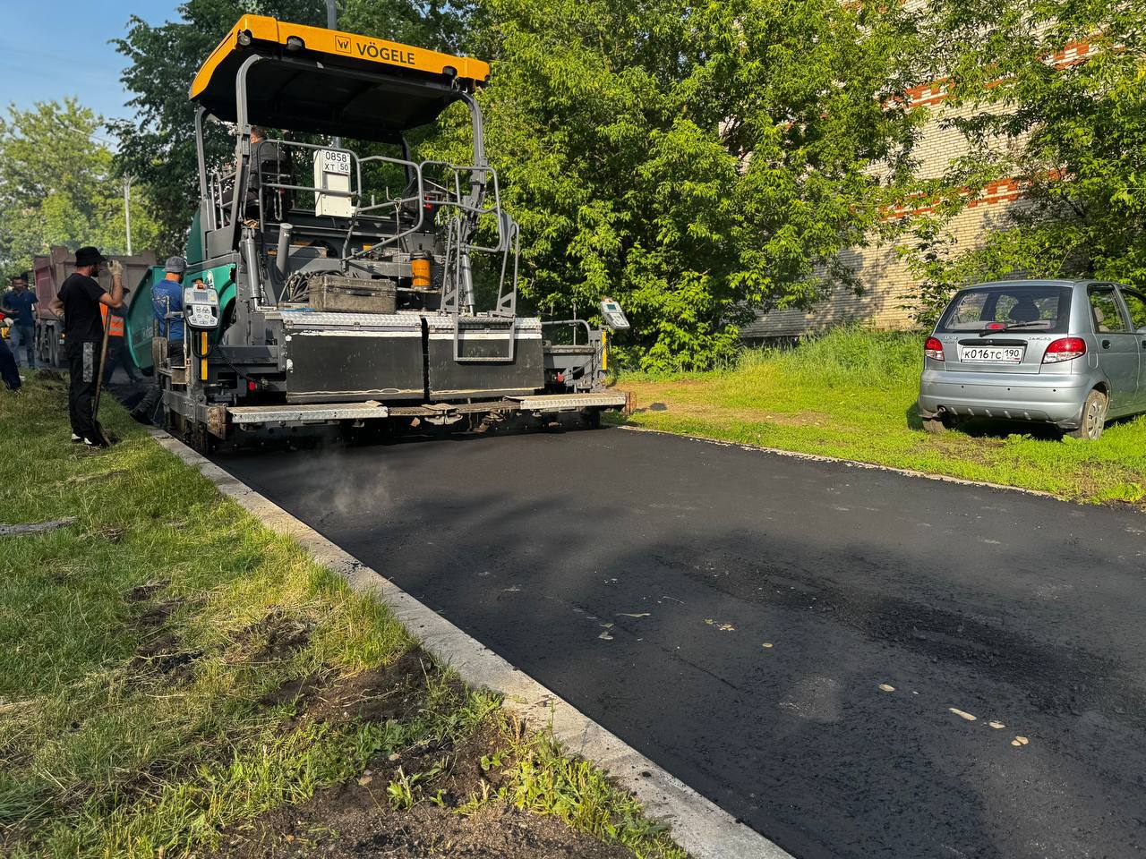 Он отметил, что уже проведены подготовительные работы, включающие демонтаж старого асфальтового покрытия и выравнивание основания. В настоящее время специалистами подрядной организации производится укладка нового асфальта.