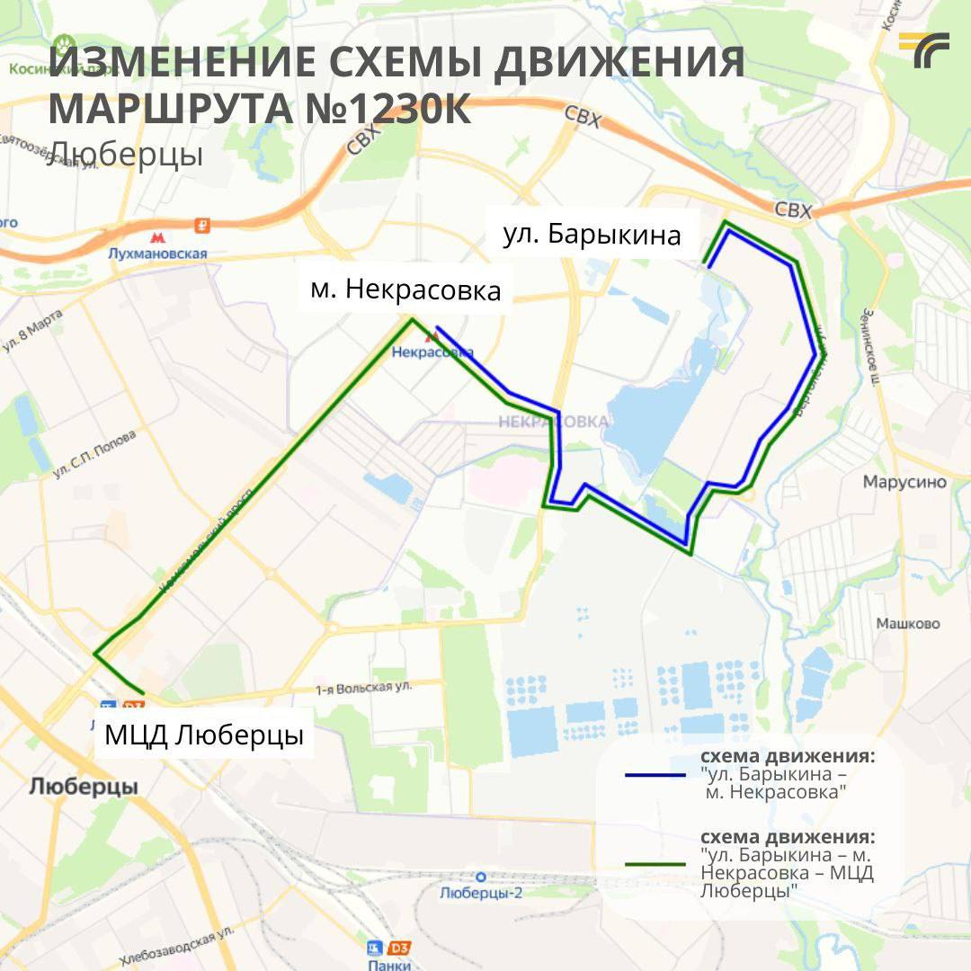 В городском округе Люберцы с 1 июня изменится схема движения маршрута №1230к «Люберцы (м/р Самолет (ул. Барыкина)) – Садовод», сообщили в Министерства транспорта и дорожной инфраструктуры Московской области.