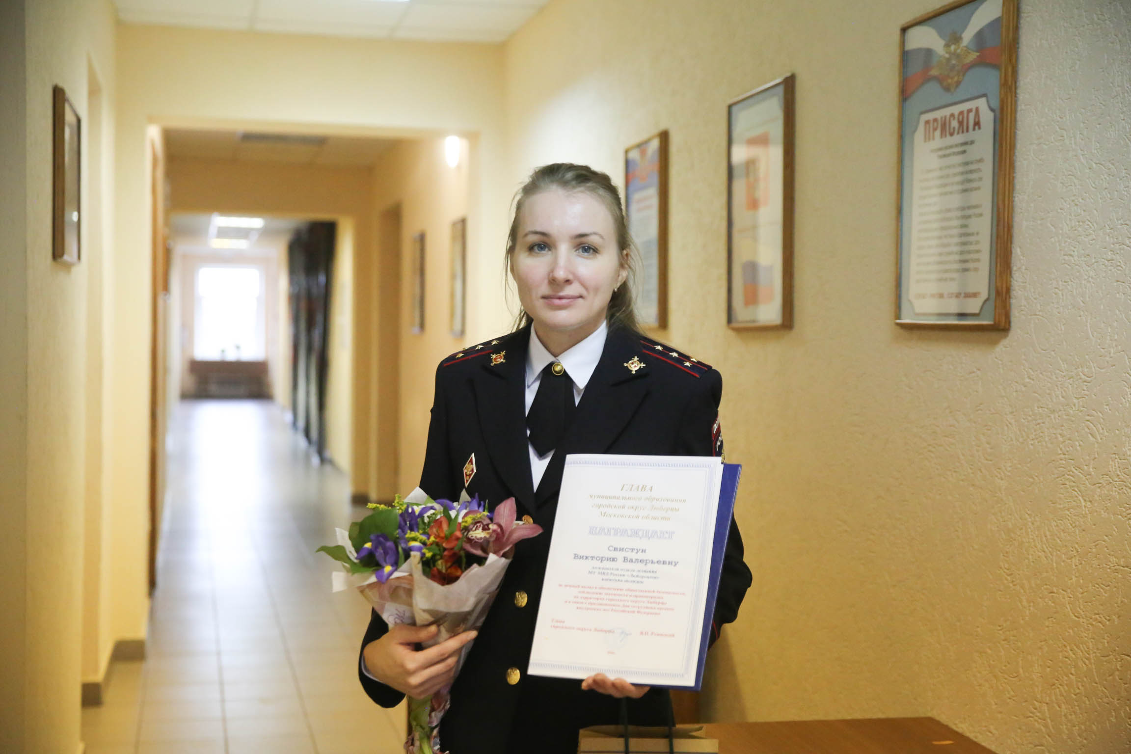 Знаком отличия и ценным подарком главы Люберец наградили прапорщика, помощника оперативного дежурного Дежурной части 1 отдела полиции Владимира Шевалдина, капитана, инспектора отдела охраны общественного порядка Михаила Баринова, майора, начальника отделения по работе с гражданами РФ отдела по вопросам миграции Евгению Шумную.