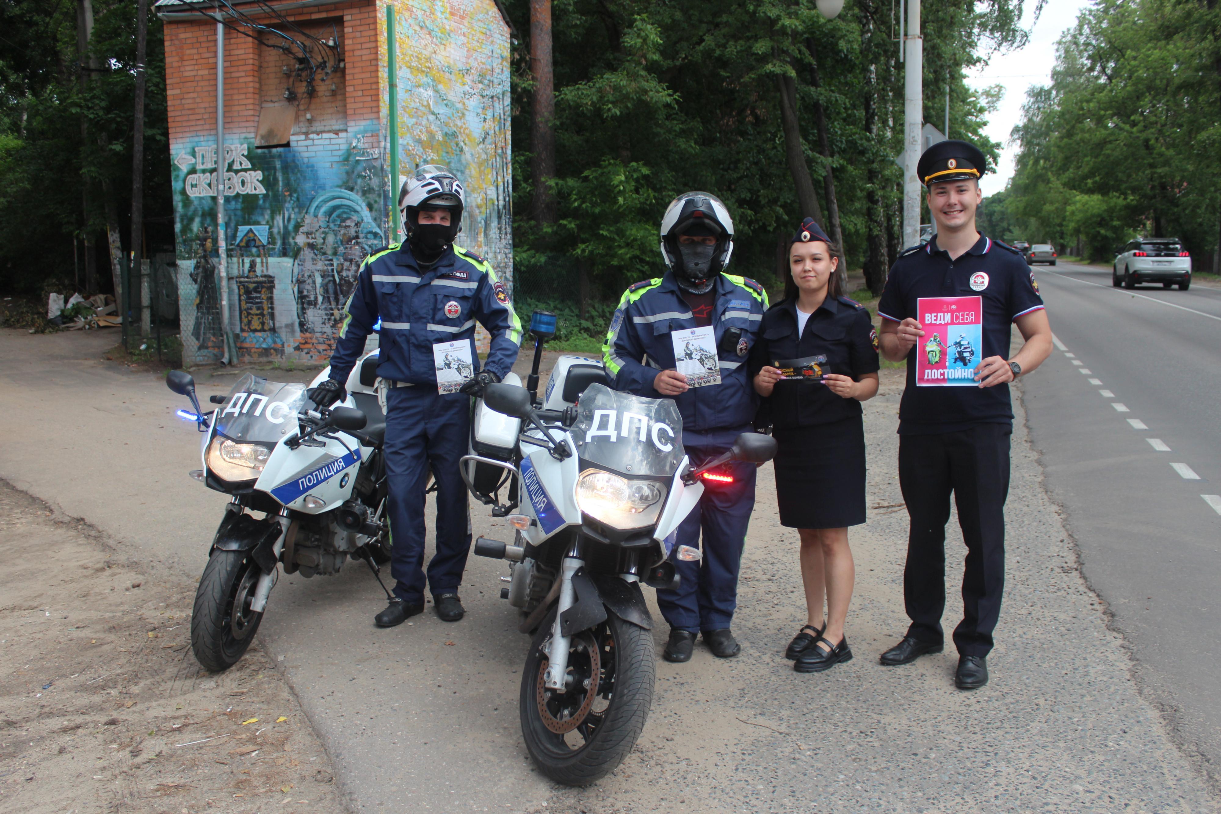 Сотрудники ГАИ Люберец призывают мотоциклистов и велосипедистов использовать защитную экипировку