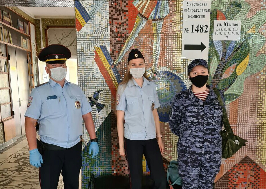 Сотрудники полиции и Росгвардии обеспечивают охрану общественного порядка при проведении Общероссийского голосования 1 июля. В заключительный день голосования представители правоохранительных органов на избирательных участках дежурят круглосуточно.