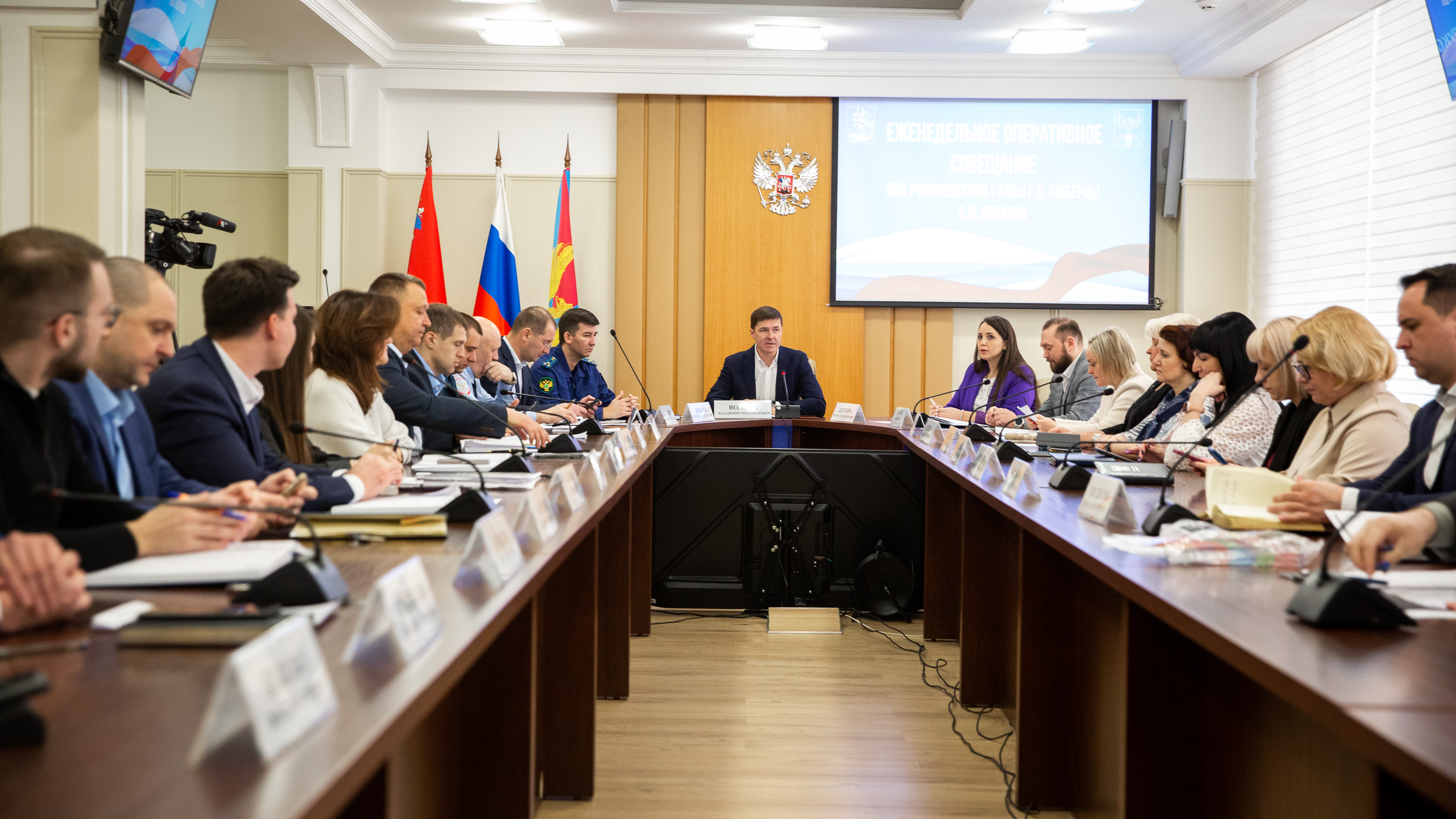 Во вторник в администрации городского округа Люберцы состоялось еженедельное оперативное совещание с участием руководителей управлений и ведомств. Провел его глава муниципалитета Владимир Волков.