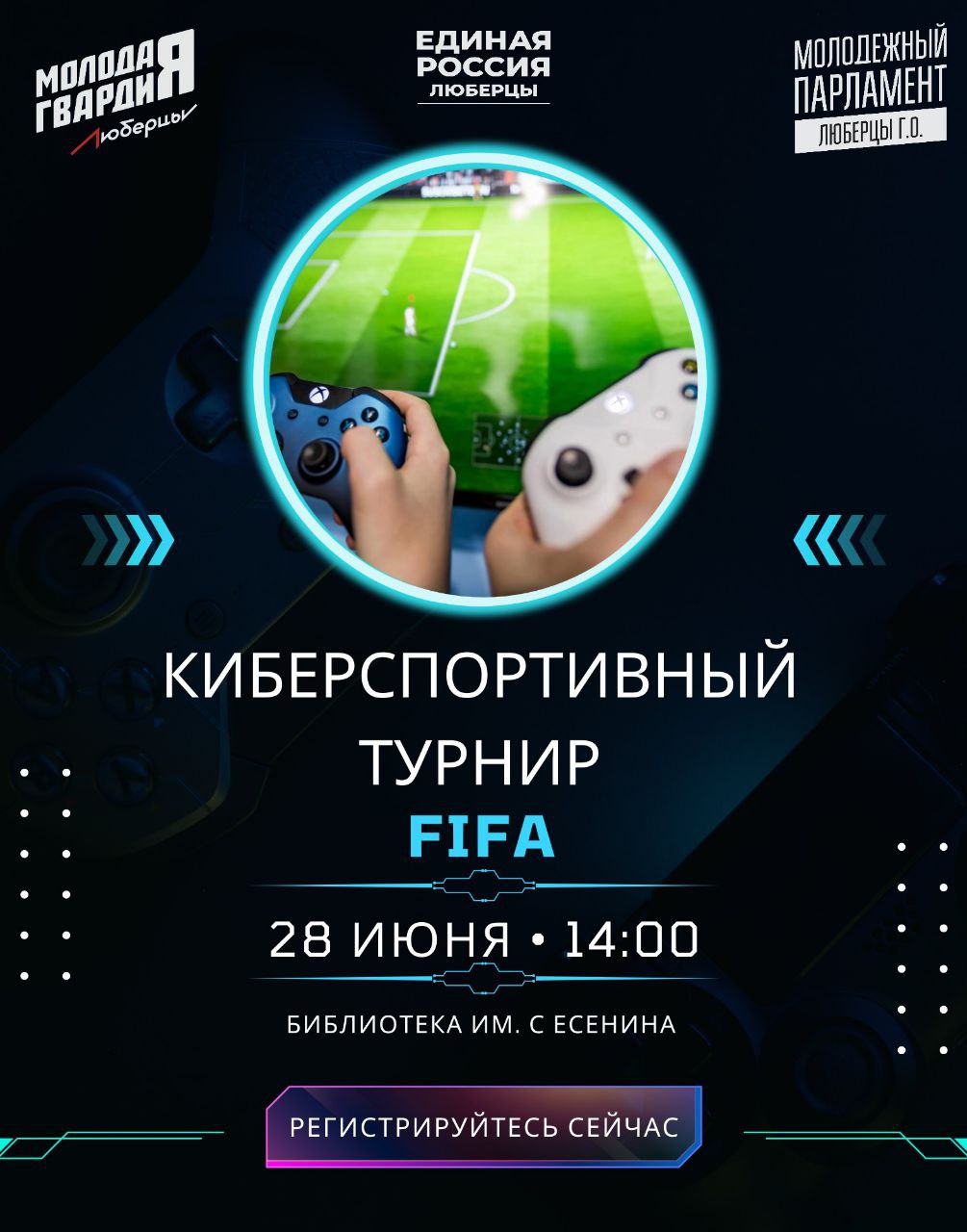 В Центральной библиотеке им. С. Есенина пройдет киберспортивный турнир по FIFA, приуроченный ко Дню молодежи. Он организован при поддержке «Молодой Гвардии Единой России» и Молодежного парламента городского округа Люберцы при Совете депутатов.