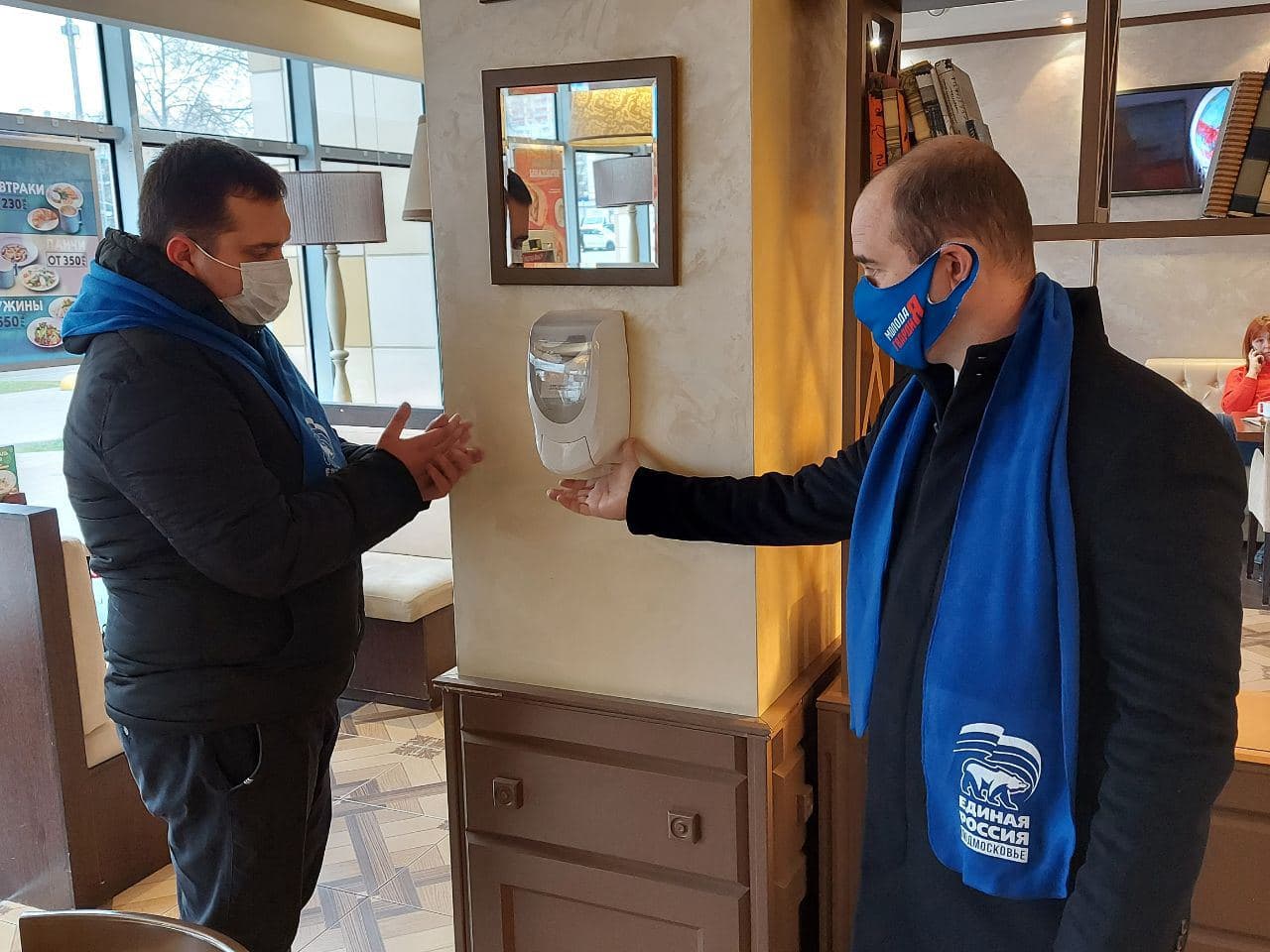 В среду руководитель фракции «Единая Россия» в Совете депутатов Люберец, муниципальный куратор партийного проекта «Народный контроль» Александр Шлапак и руководитель волонтерского штаба городского округа Георгий Николаев провели рейд и проверили соблюдение мер по противодействию распространения коронавирусной инфекции в кафе на Октябрьском проспекте. Основное внимание было уделено наличию масок и перчаток у персонала, замеру температуры на входе и наличию средств дезинфекции.