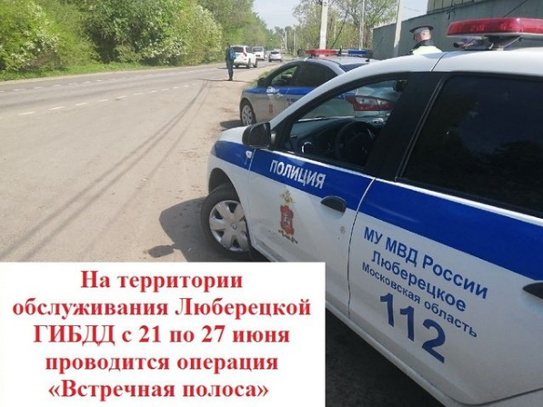 С 21 по 27 июня полицейские проведут операцию «Встречная полоса» на территории обслуживания люберецкой ГИБДД, она направлена на профилактику ДТП, сообщили в ведомстве.