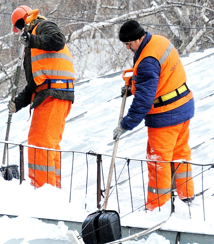 В Люберцах почти 70 бригад промышленных альпинистов очищают от снега крыши домов