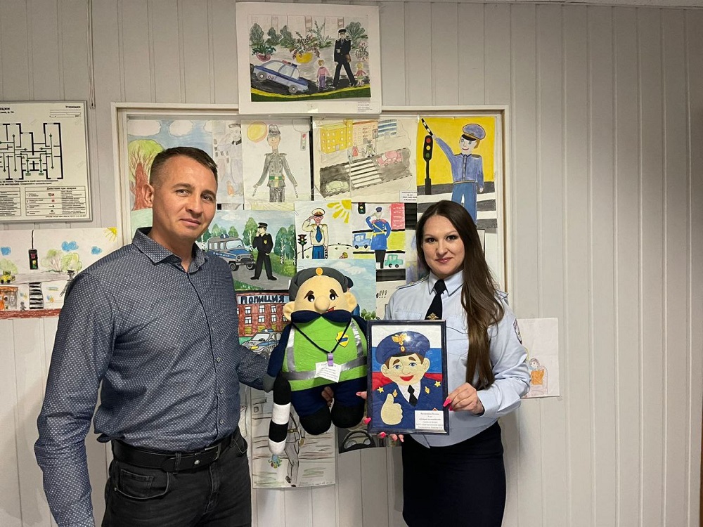 По итогам конкурса жюри выделило 3 работы: «Веселый гаишник» Анастасии Власовой, «Добрый полицейский» Полины Балашкиной и «Полицейский на службе» Глафиры Дерябиной.