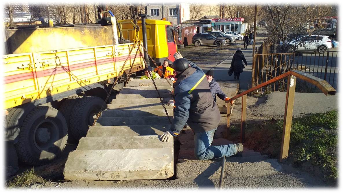 «На прошлой неделе выполнены работы по восстановлению лестничного марша на улице Шоссейная», - отметил Ружицкий.