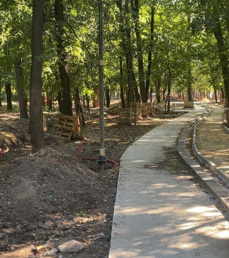 «На территории Наташинского парка продолжаются работы по реконструкции. Идет демонтаж плиточного покрытия, опор освещения, бетонных опор и малых архитектурных форм, разработка грунта механизированным и ручным способом. Начаты работы по установке опор освещения», - отметил Волков.