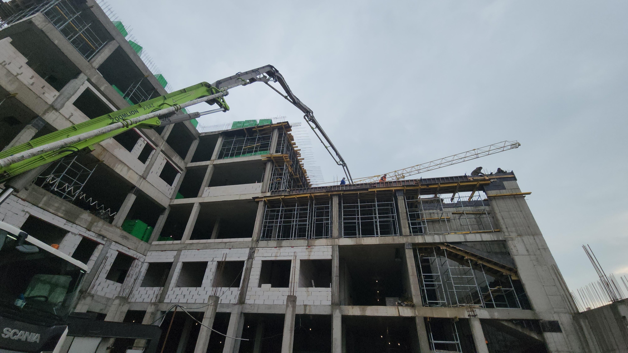На объекте трудятся 110 рабочих, задействованы 4 единицы техники. Подрядчик завершает монолитные работы. Ведется кладка внутренних перегородок, штукатурка стен, монтаж систем вентиляции, отопления и водоснабжения. Со следующей недели специалисты приступят к остеклению, установке витражей и фасадным работам.