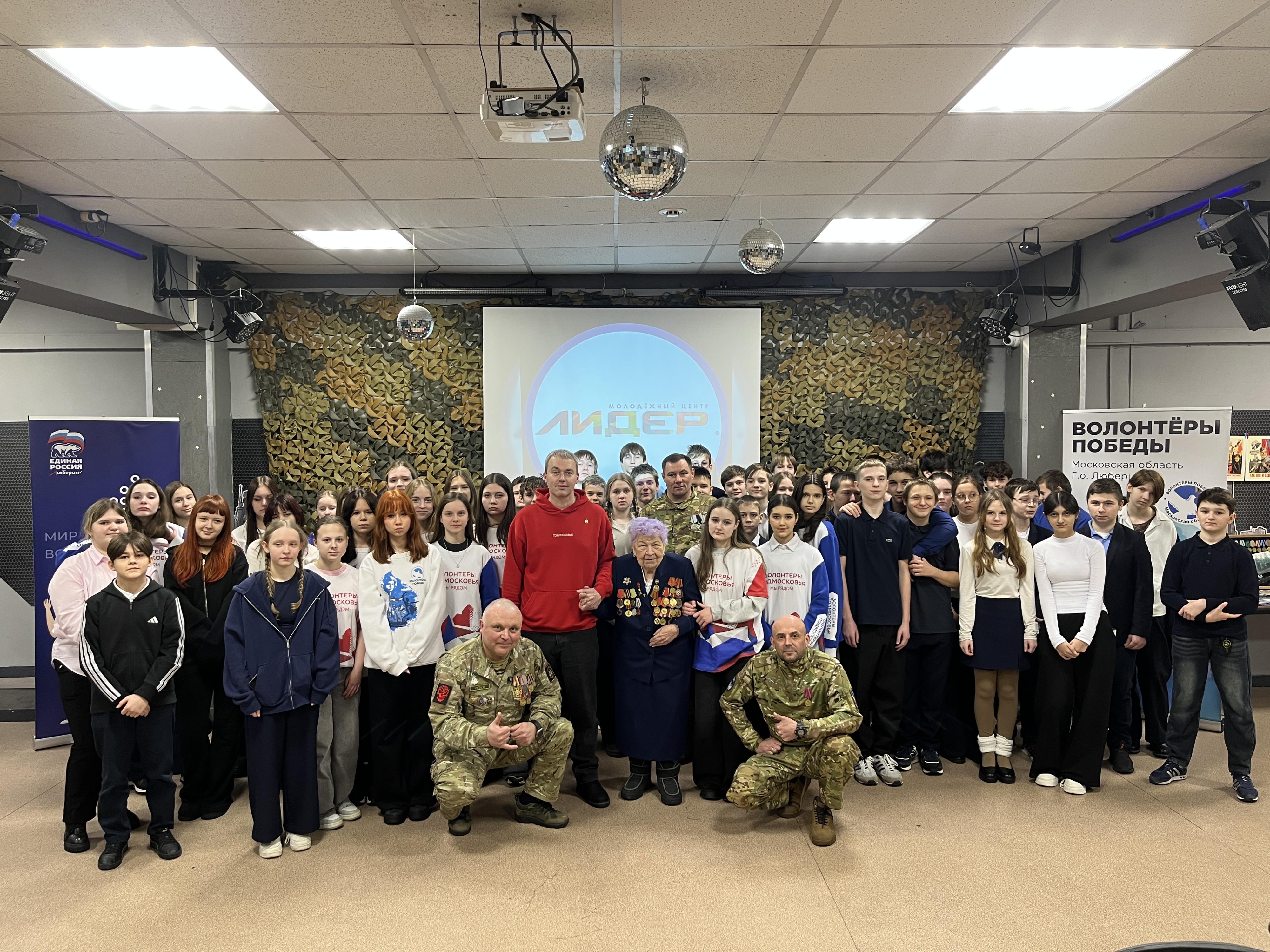 В молодежном центре «Лидер» города Дзержинский городского округа Люберцы прошла встреча учащихся лицея №3 им. Главного маршала авиации А.Е. Голованова, волонтеров, сотрудников и воспитанников центра с героями, чьи судьбы стали символом мужества и служения Родине.