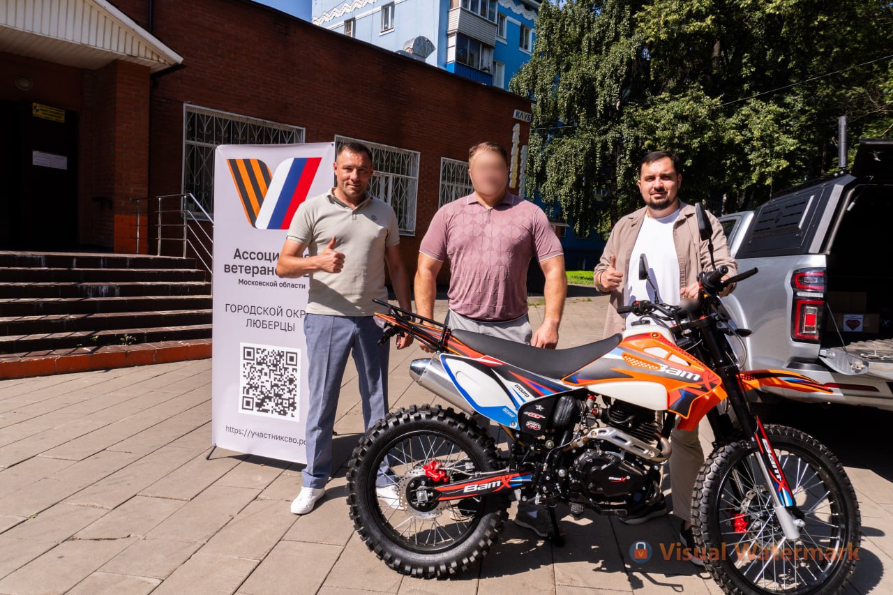 Заместитель руководителя Люберецкого отделения Ассоциации ветеранов СВО Московской области Николай Чернобровкин совместно с исполнительным секретарем местного отделения партии «Единая Россия» Георгием Николаевым передали кроссовый мотоцикл бойцу, проходящему службу в зоне специальной военной операции.
