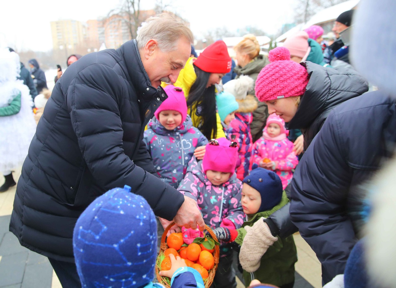 Глава городского округа Люберцы Владимир Ружицкий в понедельник поучаствовал в фестивале «Новогодний мандарин», угостил присутствующих этими цитрусовыми фруктами и поздравил с новогодними праздниками.