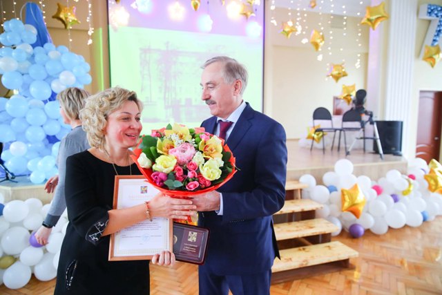 Глава городского округа Люберцы Владимир Ружицкий поздравил с 70-летним юбилеем коллектив лицея №4.