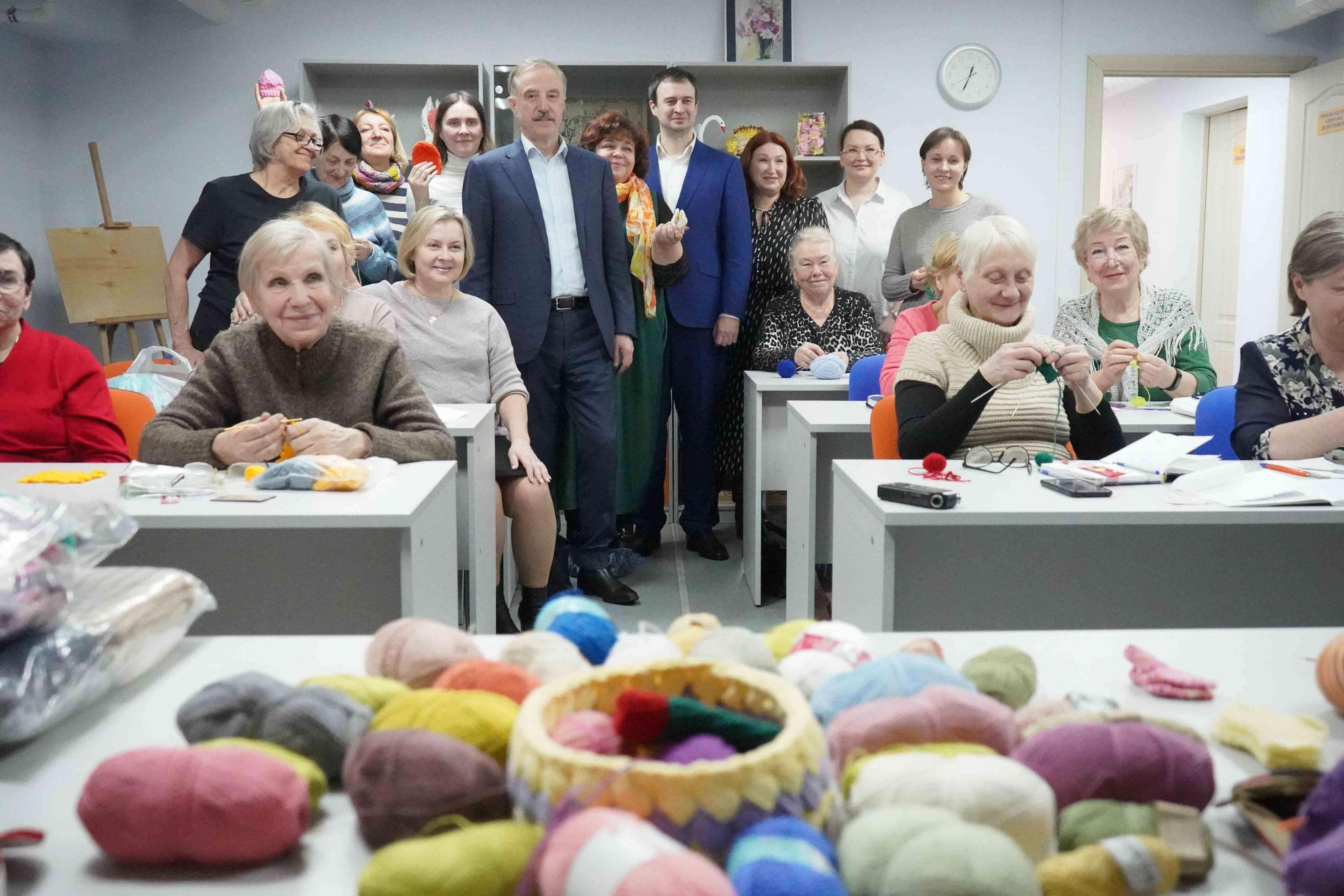 Глава городского округа Люберцы Владимир Ружицкий вместе с представительницами проекта «Активное долголетие» принял участие в акции «Я свяжу тебе жизнь».