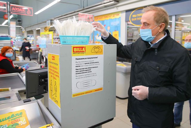 В среду, 13 мая, глава городского округа Люберцы Владимир Ружицкий проинспектировал магазины крупных торговых сетей на наличие медицинских масок.
