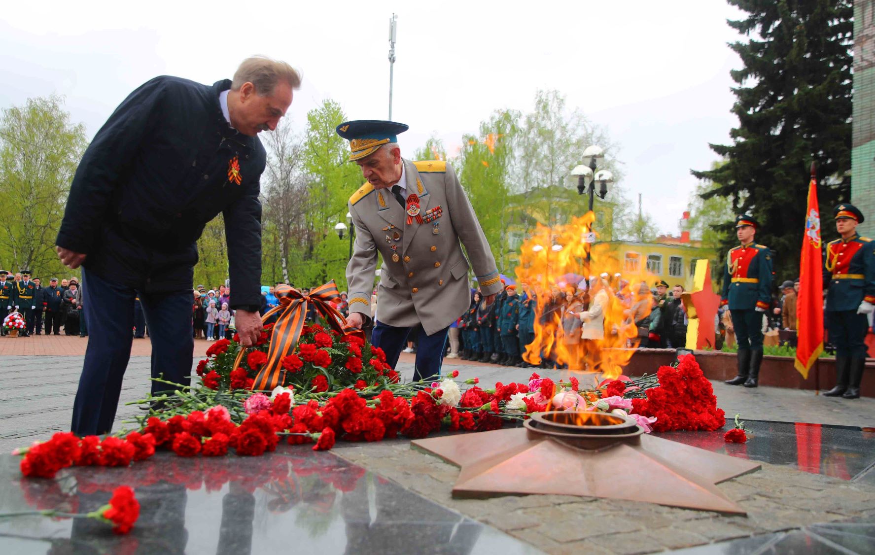 В воскресенье, 9 мая, глава городского округа Люберцы Владимир Ружицкий возложил цветы к подножию памятника Воину-Освободителю у Вечного огня в центре Люберец.
