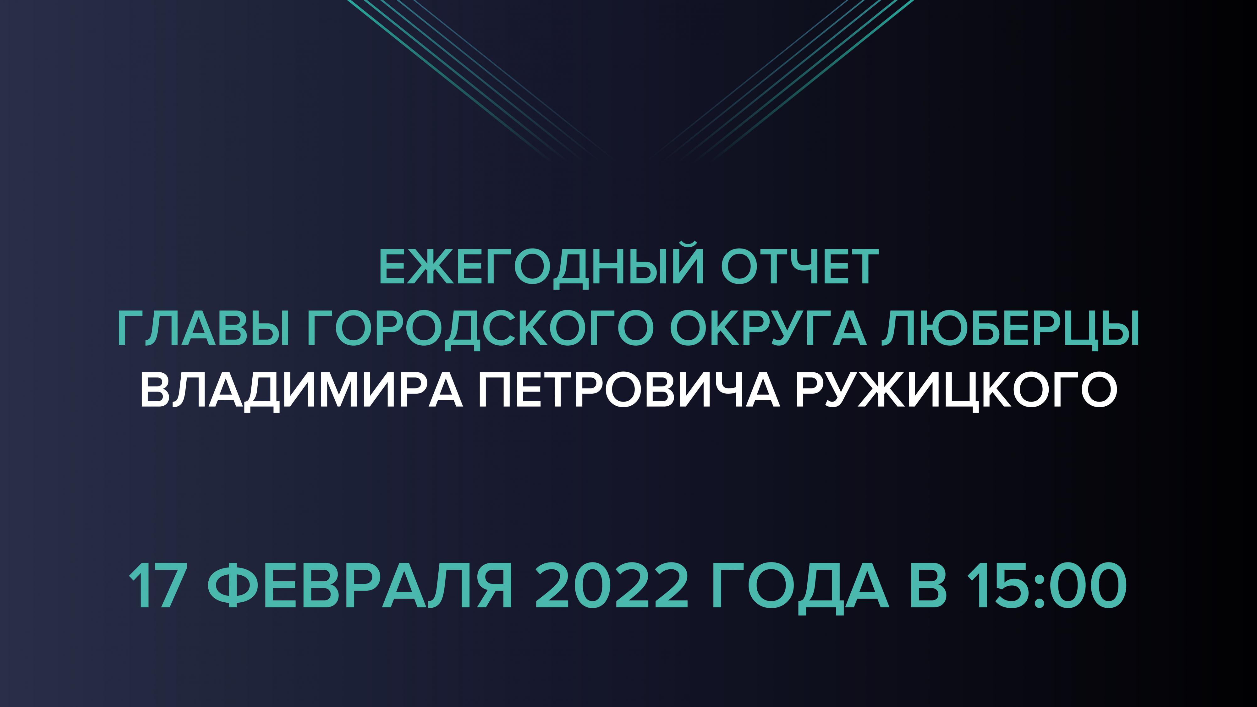 Глава городского округа Люберцы Владимир Ружицкий 17 февраля выступит с ежегодным отчётом об итогах работы в 2021 году.