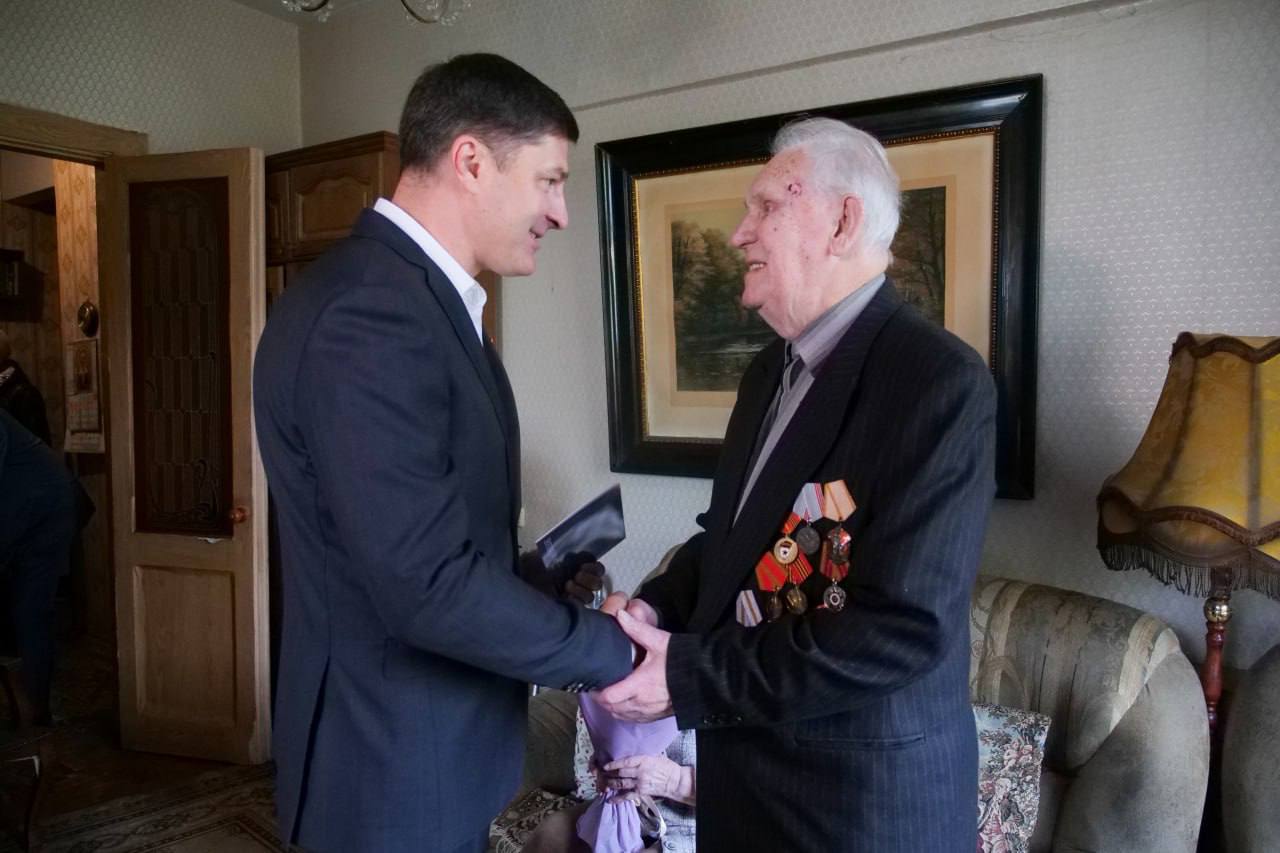 В понедельник, 6 мая, глава городского округа Люберцы, секретарь местного отделения партии "Единая Россия" Владимир Волков поздравил с Днём Победы участника Великой Отечественной войны Игоря Павловича Авдеева.