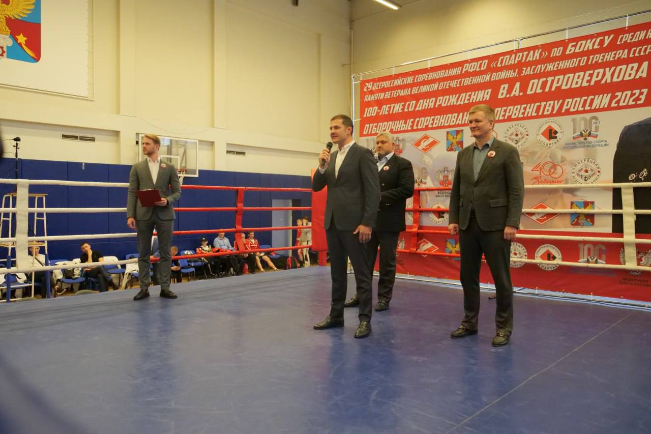 Глава городского округа Люберцы Владимир Волков в понедельник в ДС «Триумф» дал старт всероссийским соревнованиям по боксу РФСО «Спартак» памяти заслуженного тренера СССР Виталия Островерхова.