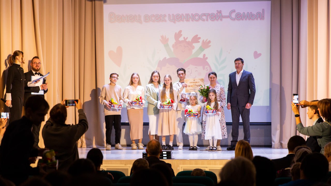 Глава городского округа Люберцы Владимир Волков во время торжественного мероприятия «Венец всех ценностей - Семья», посвященное празднованию Года семьи в 2024 году, вручил 13 многодетным семьям награды и денежные сертификаты.
